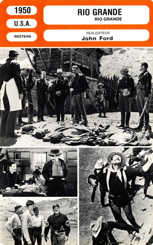 Rio Grande is the third film of the “Cavalry Trilogy” made by John Ford; the two other films are Fort Apache (1948) and She Wore a Yellow Ribbon (1949). For the first time, Maureen O’Hara played opposite John Wayne. Thrilled by the result, John Ford would use this notable couple again several times, in The Quiet Man (1952), The Long Gray Line (1955) [sic -- John Wayne was not in this movie] and The Wings of Eagles (1957). Claude Jarman Jr., who had played the lead in Clarence Brown’s The Yearling, played Jeff Yorke. His pal Tyree was played by Ben Johnson, a former stuntman who thanks to John Ford became an actor and who would win an Oscar for Peter Bogdanovich’s The Last Picture Show in 1971.
